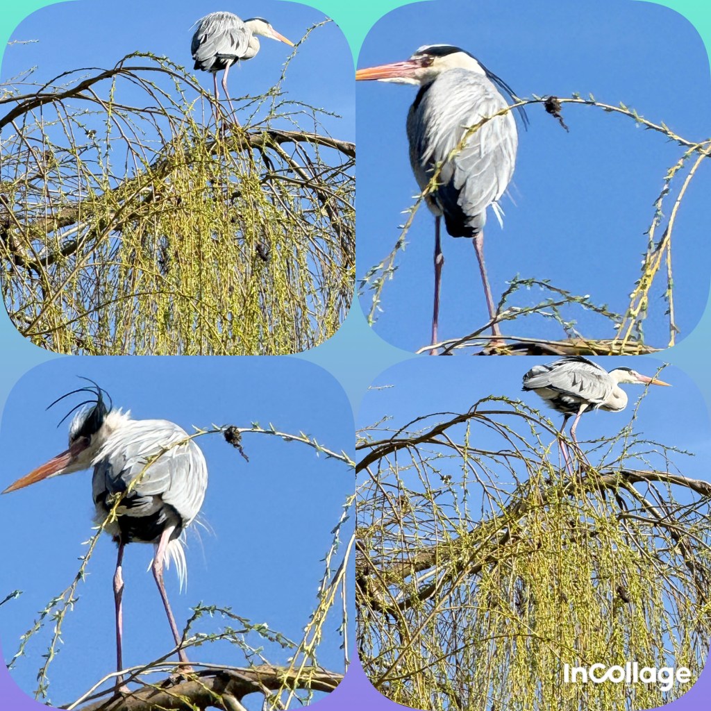 Der Reiher, die Berliner sprechen vom Seereiher im Gegensatz zum Flußreiher an Havel und Spree oder dem Brückenreiher, der manchmal vom Geländer auf die Schiffe schaut. Dieser Reiher auf dem Nachhauseweg jedenfalls hat es sich zum Sonnenbad auf der Spitze des hohen Baumes bequem gemacht und putzt ab und an sein Gefieder.